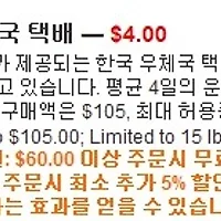 - 주문당 105불까지, 중량은 15파운드까지가 최대 한도 입니다