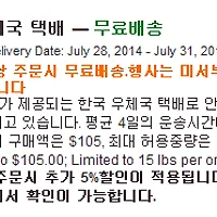 한국 우체국택배 추가요금없이 4달러 고정가로 배송됩니다
